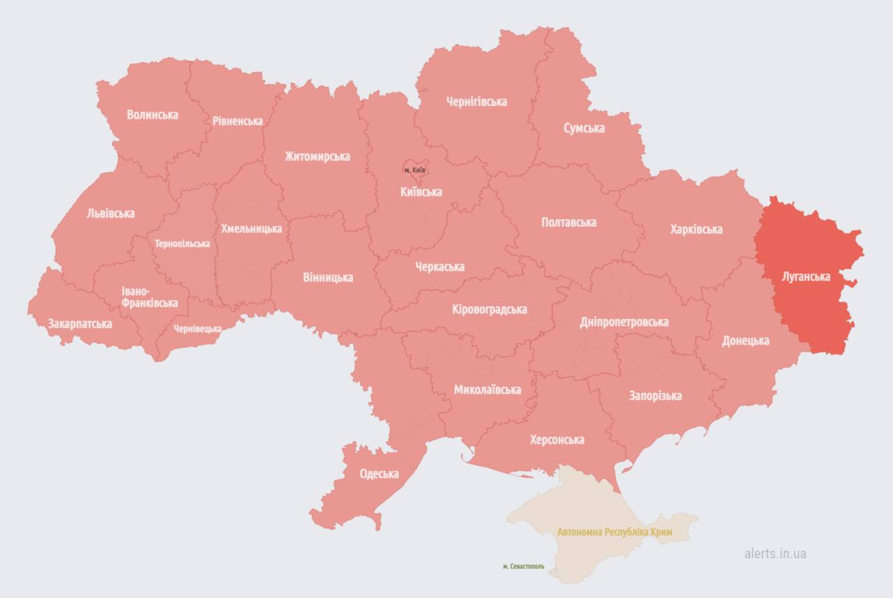 13.05 Воздушная тревога уже по всей Украине кроме Крыма.