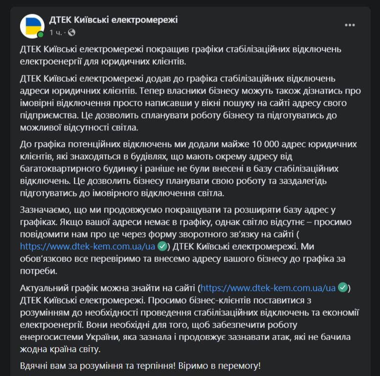 - Сообщил, что веерные отключения света в данный момент идут в 15 областях и Киеве.