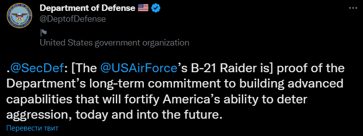 В США представили новый стратегический бомбардировщик B-21 Raider. Он должен сменить стоящий сейчас на вооружении стелс-самолет B-2 Spirit.