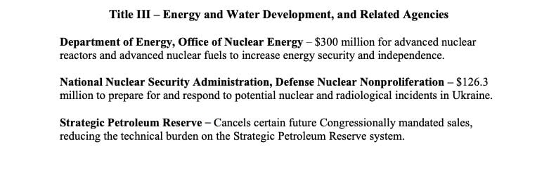 - 4,92 млрд гуманитарной помощи (из которых половину получит американский Минздрав на помощь украинским беженцам);