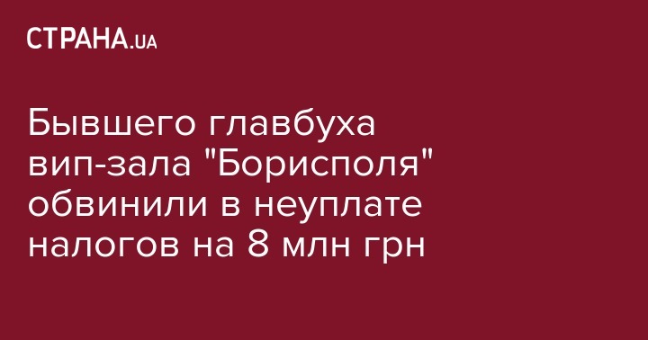 Прокуратура подозревает бывшего главного бухгалтера государственного предприятия "Зал официальных делегаций" аэропорта "Борисполь" в причинении государству почти 8 млн грн ущерба. Речь идет об уклонении от налогов и служебной халатности.