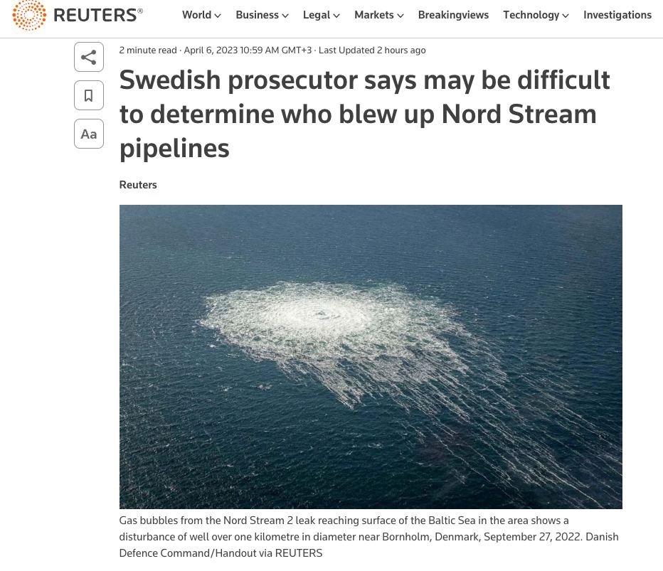 "Существует различная информация и отчеты о саботаже против газовых труб. Инцидент, очевидно, стал открытой ареной для различных попыток влияния", - говорится в заявлении прокурора Матса Юнгквиста.