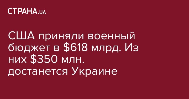 США приняли военный бюджет в $618 млрд. Из них $350 млн. достанется Украине