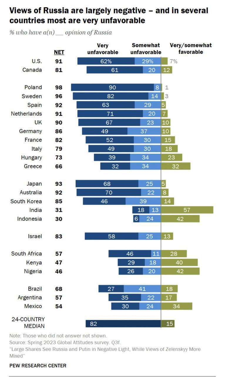 11.54 Отношение к России в разных странах мира по опросу Pew Research Center.