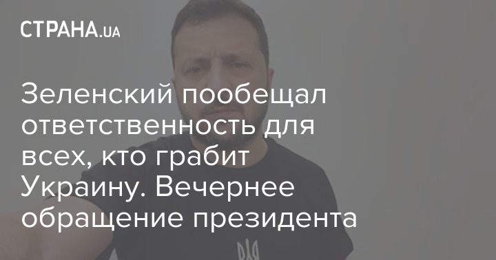 Зеленский пообещал ответственность для всех, кто грабит Украину. Вечернее обращение президента