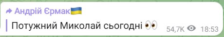 "Мощный Николай сегодня". Андрей Ермак сделал загадочный пост из трех слов