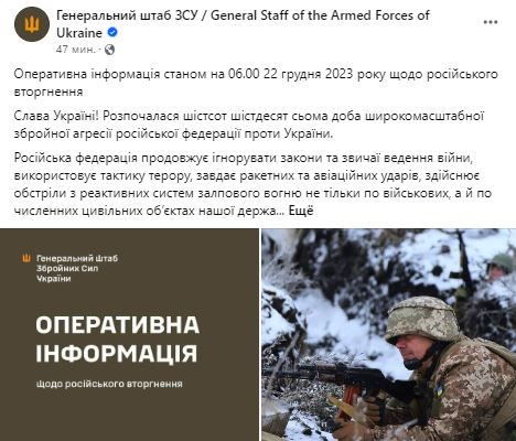 Война в Украине идет уже 667-й день. Мы следим за последними новостями и ключевыми событиями 22 декабря 2023 года в обновляемом онлайне.