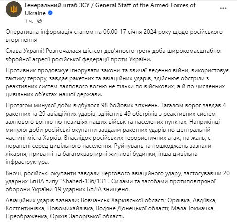 Утром 17 января Генштаб ВСУ обнародовал сводку о ситуации на фронте за минувшие сутки.