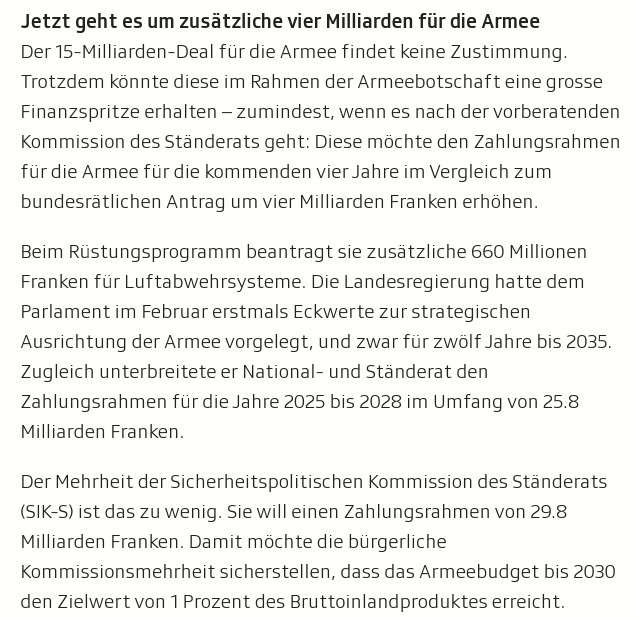 Совет кантонов Швейцарии (верхняя палата парламента страны, он же Сенат) отклонил выделение Украине чрезвычайной дополнительной помощи в размере 5,6 миллиарда долларов и 11,1 миллиарда долларов на нужды армии.