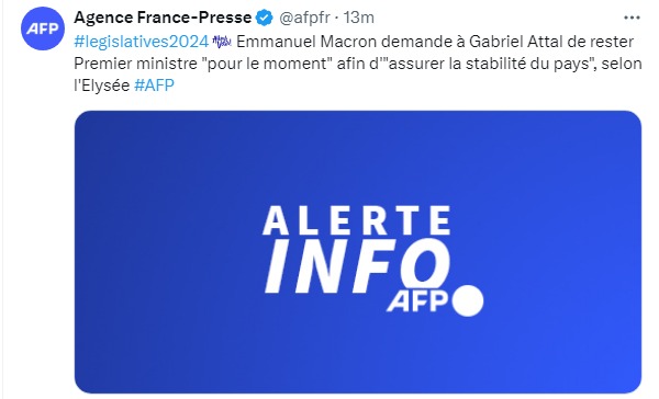 "Макрон просит Атталя остаться премьер-министром, чтобы "обеспечить стабильность страны", — говорится в публикации.