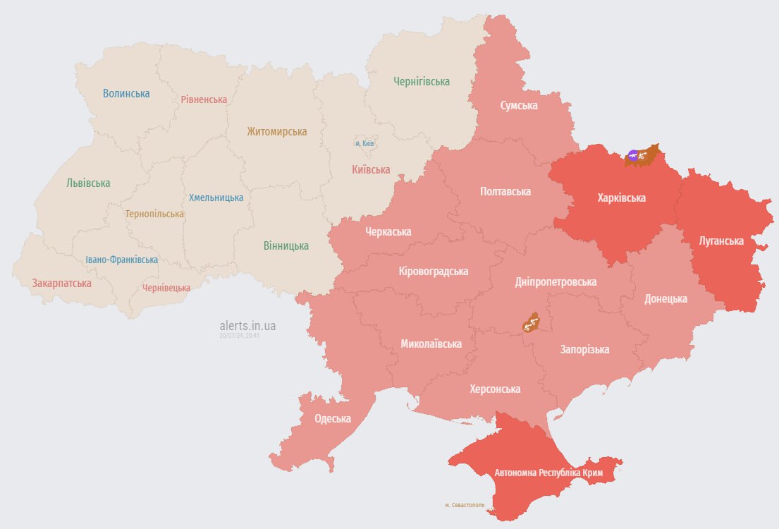 20.44 Тревога в половине страны из-за баллистической угрозы.