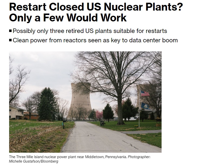 Сейчас уже ведется работа по перезапуску законсервированного реактора Palisades в Мичигане, он ожидается к концу следующего года. Владельцы двух других станций - Duane Arnold в Айове и Three Mile Island в Пенсильвании - рассматривают возможность последовать примеру Мичигана.