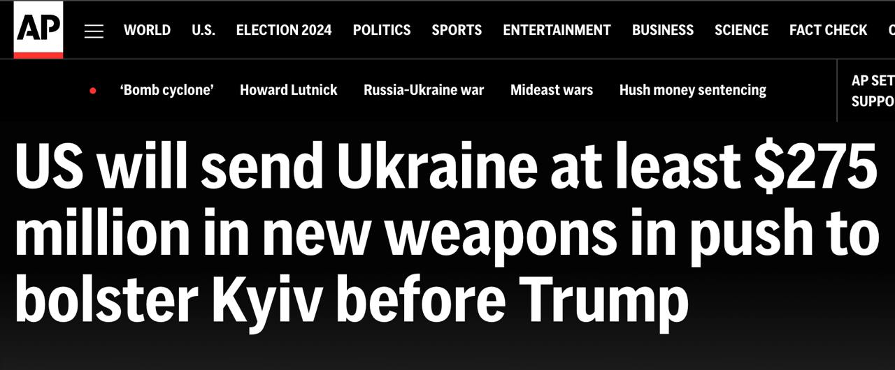 10.53 Администрация Байдена анонсировала новый пакет военной помощи Украине на 275 млн долл., сообщает АР.
