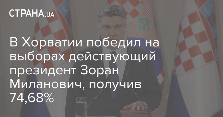 По итоговым результатам выборов в Хорватии победил действующий президент Зоран Миланович. Он получил 74,68% после подсчета 100% голосов.