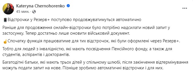Раньше для продления онлайн-отсрочки требовалось посылать новый запрос в приложении. Теперь достаточно обновить военный документ.