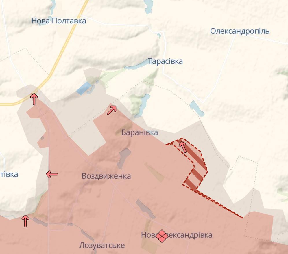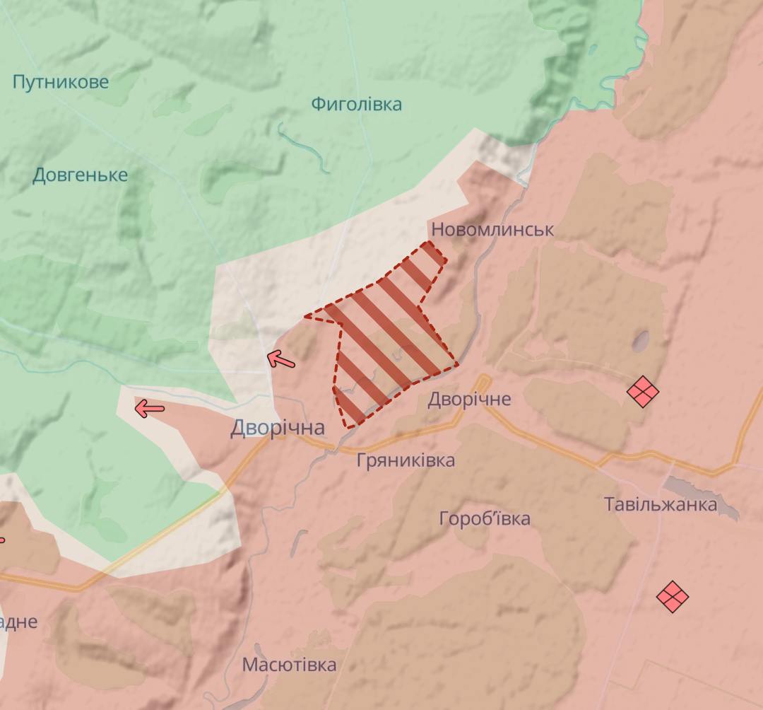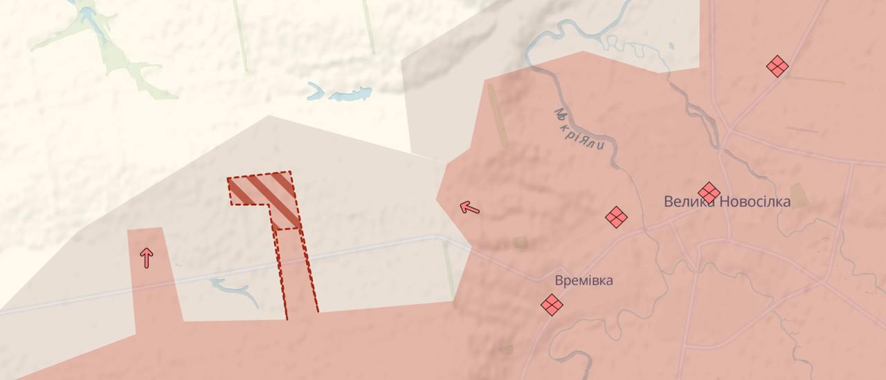13:53 Армия РФ продолжает наступление западнее Великой Новоселки, свидетельствует карта Deep State.