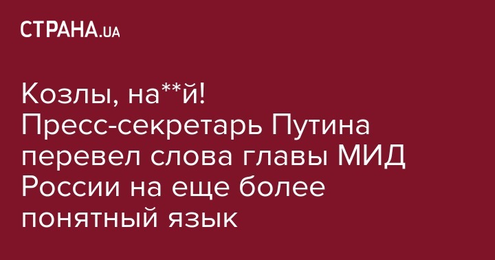 Козлы, на**й! Пресс-секретарь Путина перевел слова главы МИД России на еще более понятный язык