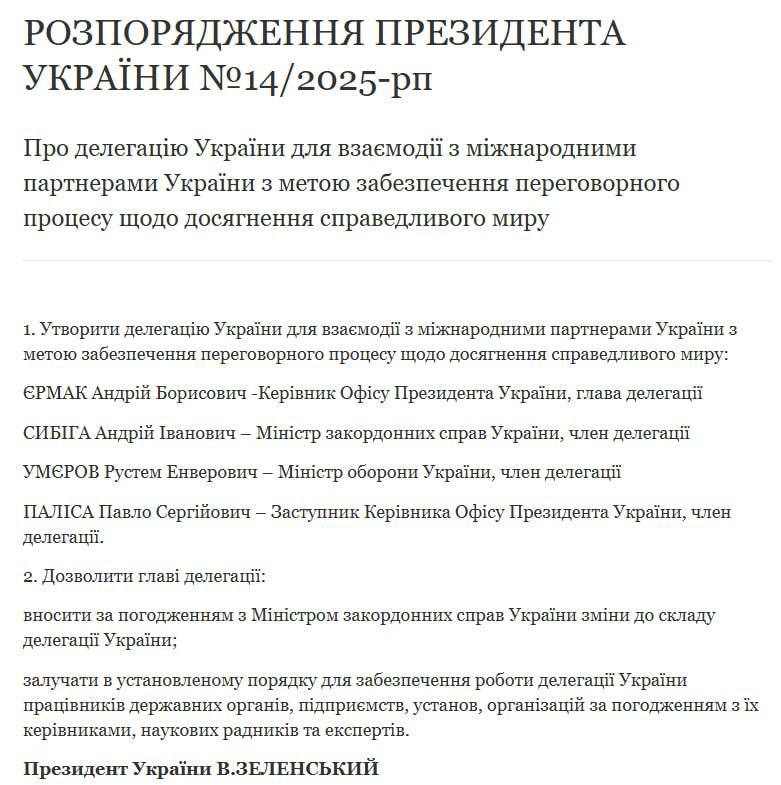 15:37 Президент Владимир Зеленский утвердил состав переговорной группы Украины для мирных переговоров: