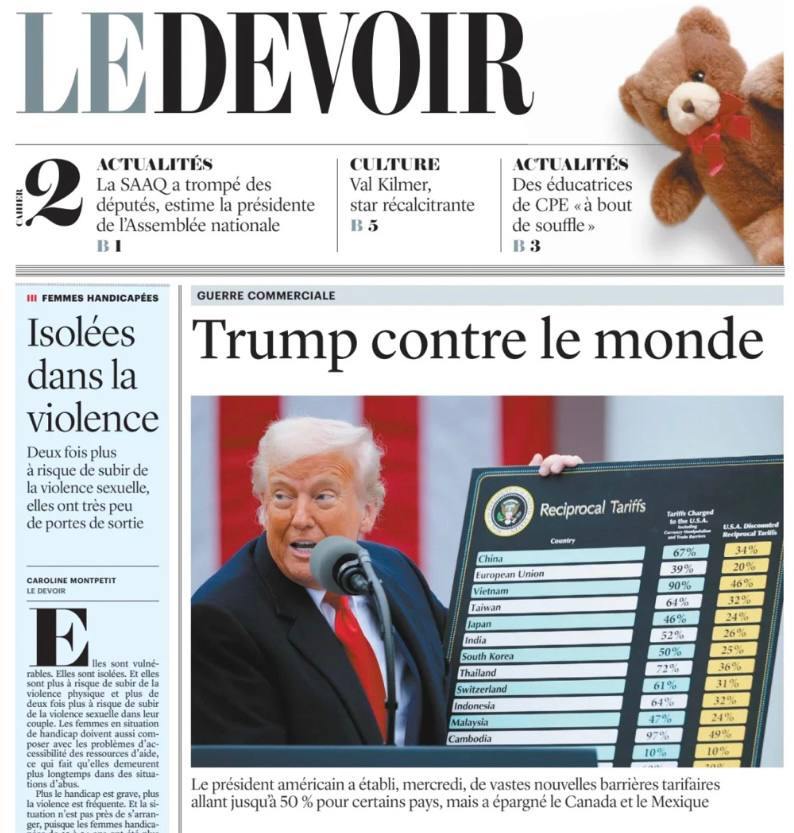 Мировые СМИ вынесли пошлины Трампа, введенные против всех стран, на свои обложки.
