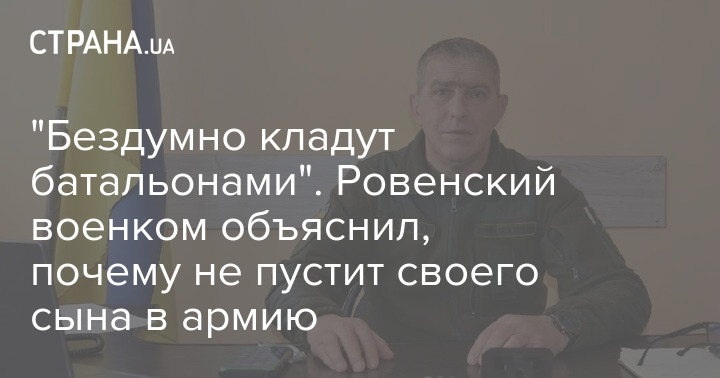 Начальник второго отдела Дубенского районного ТЦК и СП в Ровенской области подполковник Юрий Ковалюк заявил, что не пустит в армию своего сына, потому что на фронте людей "бездумно кладут батальонами".