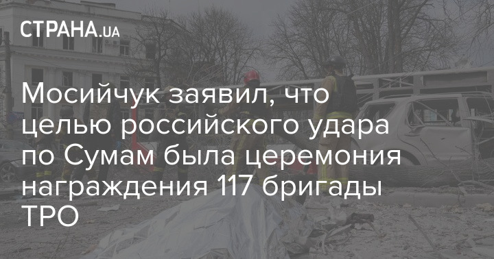 Мосийчук заявил, что целью российского удара по Сумам была церемония награждения 117 бригады ТРО
