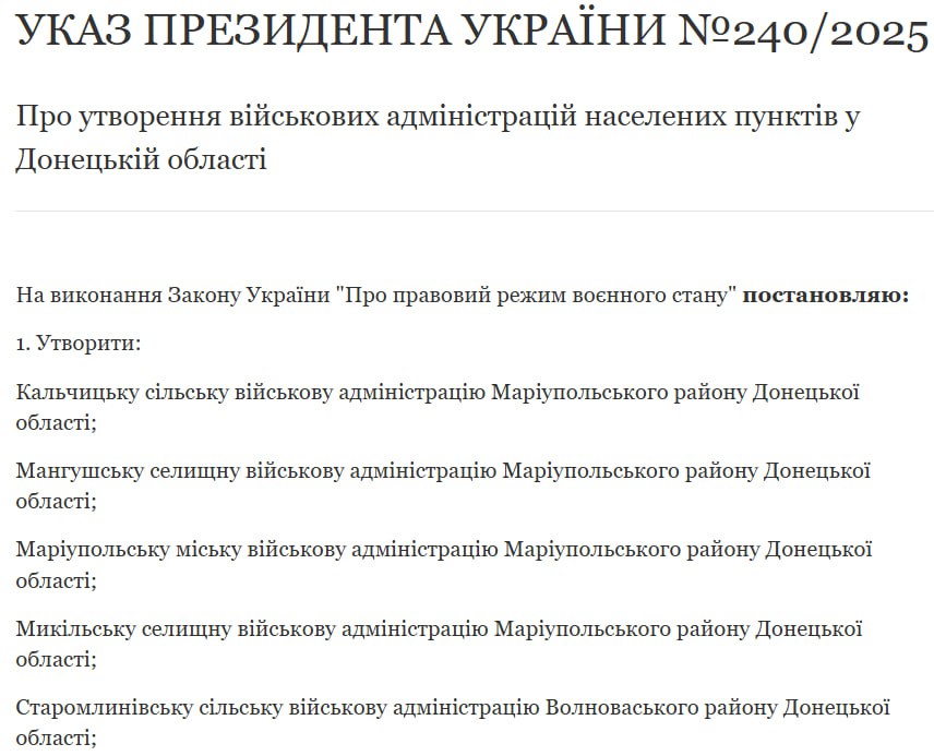 Соответствующий указ №240/2025 опубликован на сайте Офиса президента.