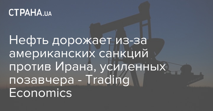 Нефть дорожает из-за американских санкций против Ирана, усиленных позавчера. Об этом пишет Trading Economics.