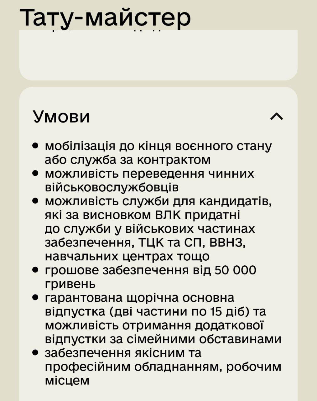 Объявление о поиске такого специалиста было размещена 17 апреля на сайте "Резерв+" в разделе вакансий в Силах обороны Украины.
