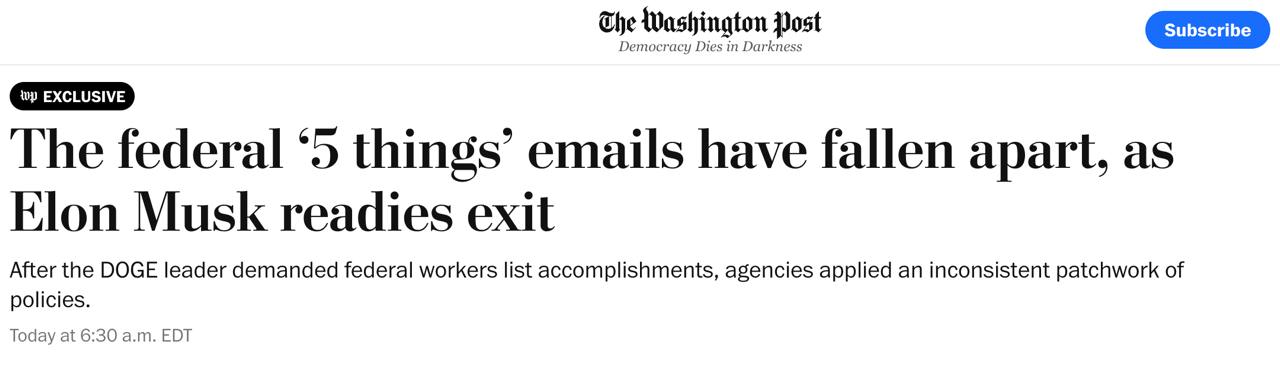 Издание сообщило, что точная дата ухода Маска пока неизвестна, однако ожидается, что его статус специального государственного служащего истечет в конце мая. Предприниматель считает, что его уход не уменьшит влияние или работу DOGE, поскольку члены этого ведомства уже закрепились во многих федеральных агентствах.