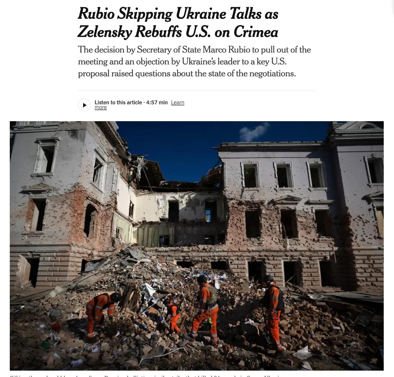 Госсекретарь США Марко Рубио не поехал в Лондон на переговоры с Украиной, потому что украинский президент Владимир Зеленский отверг предложения США по Крыму.
