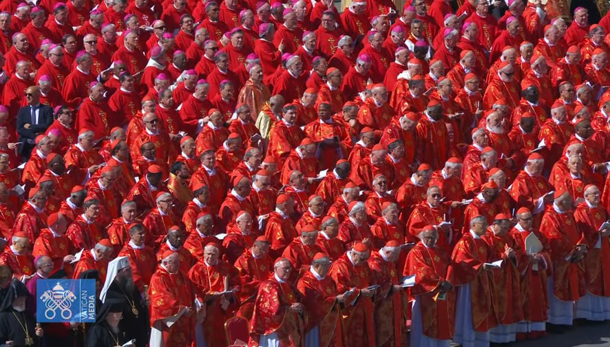 Обряд возглавляет декан коллегии кардиналов Джованни Баттиста Ре. Вместо традиционных трёх гробов (из кипариса, свинца и дуба), понтифик завещал использовать только один - деревянный, обитый цинком.