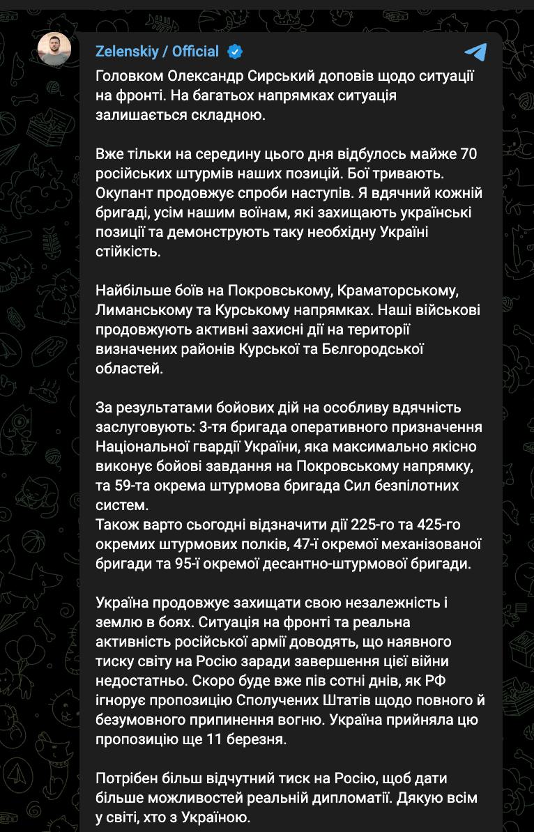 16:43 Зеленский заявил, что украинские войска остаются в Курской области. Такую информацию ему доложил главком Сырский.
