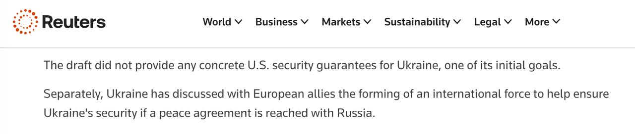 Позже издание Reuters подтвердило наше предположение, что в сделке нет гарантий безопасности для Украины. Издание напоминает, что именно такие гарантии были одной из первоначальных целей соглашения для Украины.