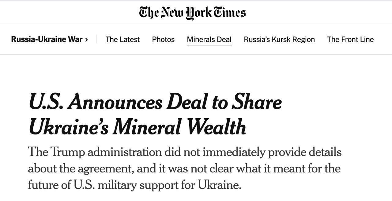 Хотя "некоторые в Украине и за ее пределами увидели в этой сделке не более чем попытку США воспользоваться зависимостью Украины от американского оружия и финансовой поддержки, чтобы получить контроль над ценными природными ресурсами, не предлагая взамен надежных гарантий".