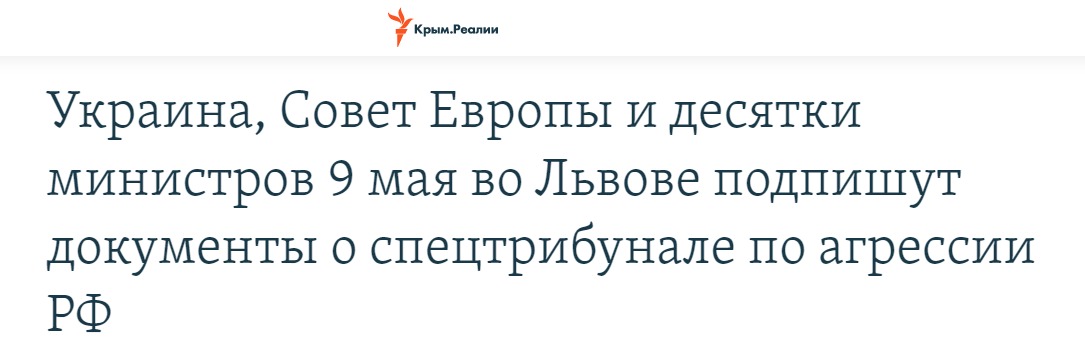 Руководство Украины и Совета Европы, а также министры иностранных дел десятков стран 9 мая во Львове подпишут документы о создании специального трибунала, который будет заниматься агрессией России против Украины.