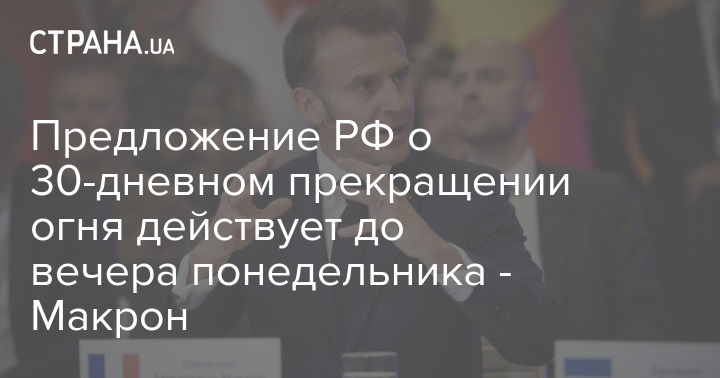 Президент Франции Эмманюэль Макрон заявил, что предложение для России о 30-дневном прекращении огня действует только до вечера понедельника.