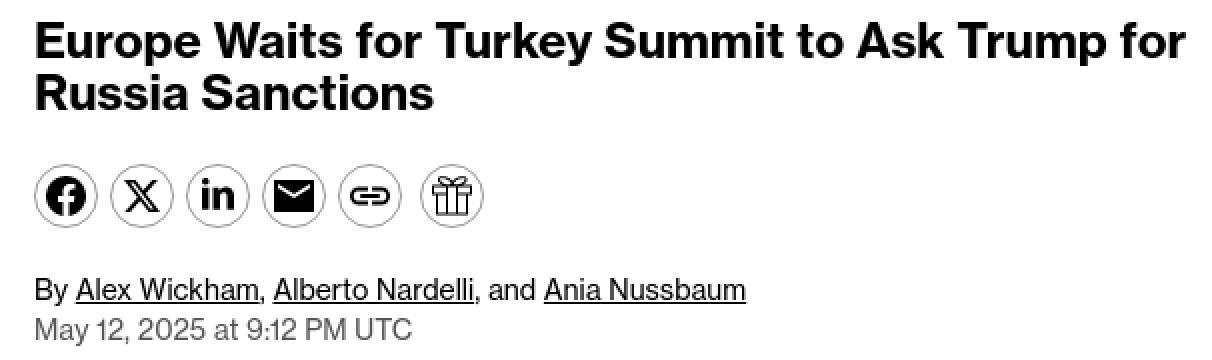 В публикации говорится, что европейские лидеры готовы ждать до переговоров в Стамбуле, а также возможной встречи между президентом Украины Владимиром Зеленским и российским лидером Владимиром Путиным, "прежде чем подталкивать США к объявлению новых санкций против Москвы".