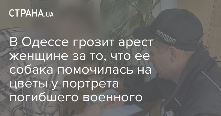 В Одессе грозит арест женщине за то, что ее собака помочилась на цветы у портрета погибшего военного
