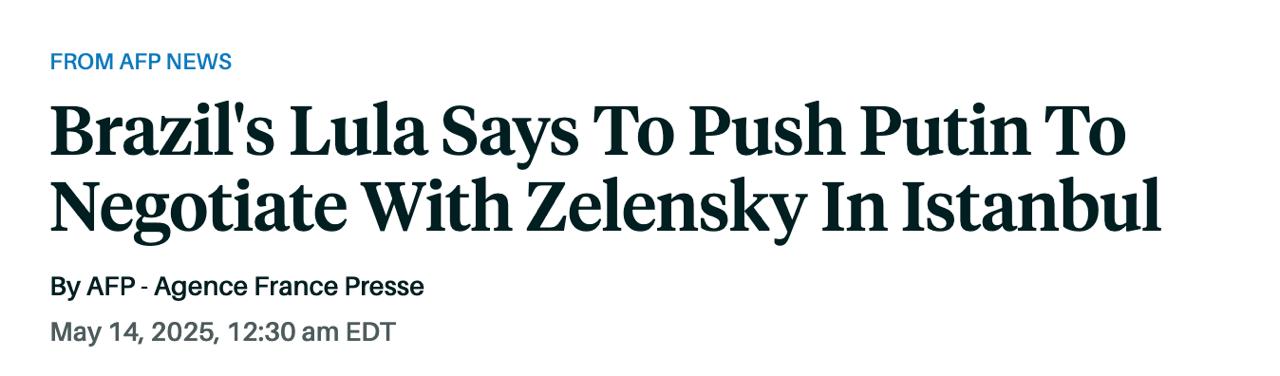 "Я попытаюсь поговорить с Путиным. Мне ничего не стоит сказать: "Эй, товарищ Путин, поезжайте в Стамбул и ведите переговоры, черт возьми", - сказал Лула на пресс-конференции в Пекине перед отъездом.