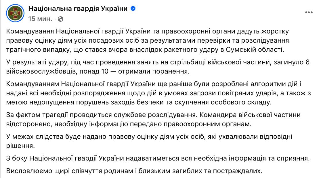 Сегодня Нацгвардия официально подтвердила удар по полигону в Сумской области.