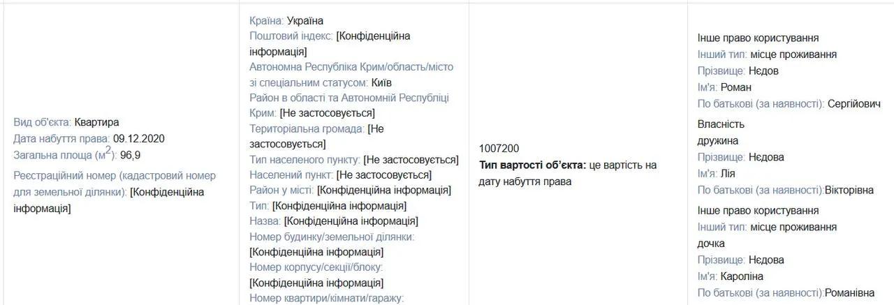 Источники журналистов приводят в качестве примера родственников заместителя руководителя подразделения НАБУ Романа Недова, которые покупают дорогую недвижимость и автомобили, указывая в декларации о доходах заниженную стоимость приобретений или просто не заполняя этот пункт, а затем передаривают эти активы супруге сотрудника бюро.