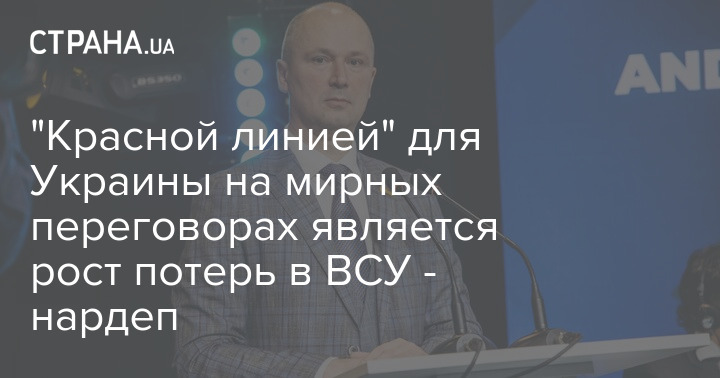 "Красной линией" для Украины на мирных переговорах являются не территории, а рост потерь в ВСУ. Об этом заявил народный депутат от партии "Слуга народа" Тарас Тарасенко в интервью YouTube-каналу "Відверто".