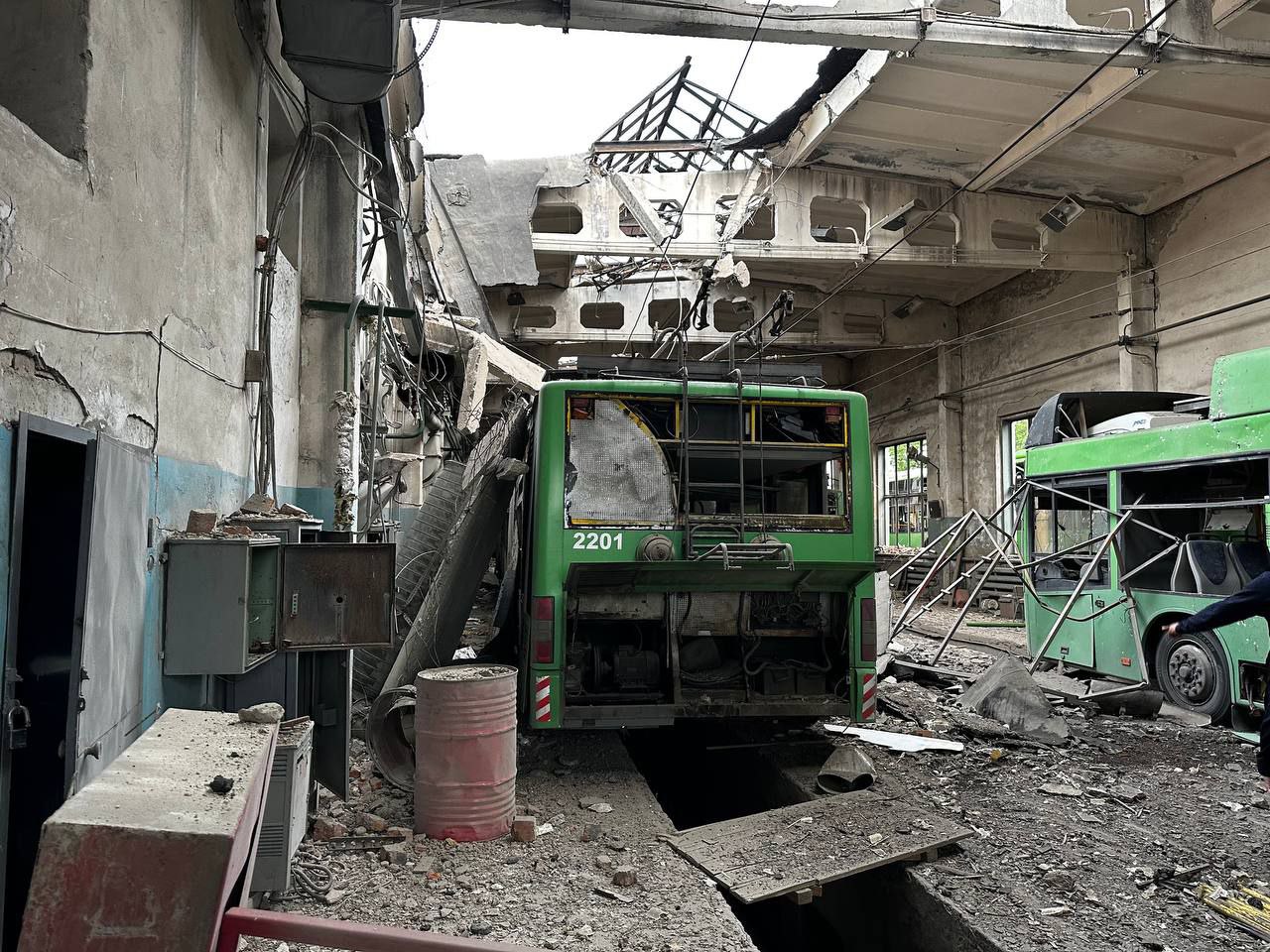 Один троллейбус уничтожен полностью, еще 18 получили различные степени повреждений.
