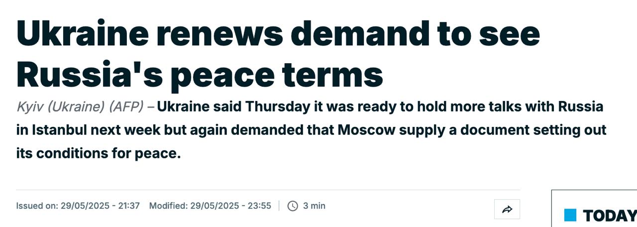 Москва предлагала встретиться 2 июня и уже на встрече хочет озвучить свои условия для мира.