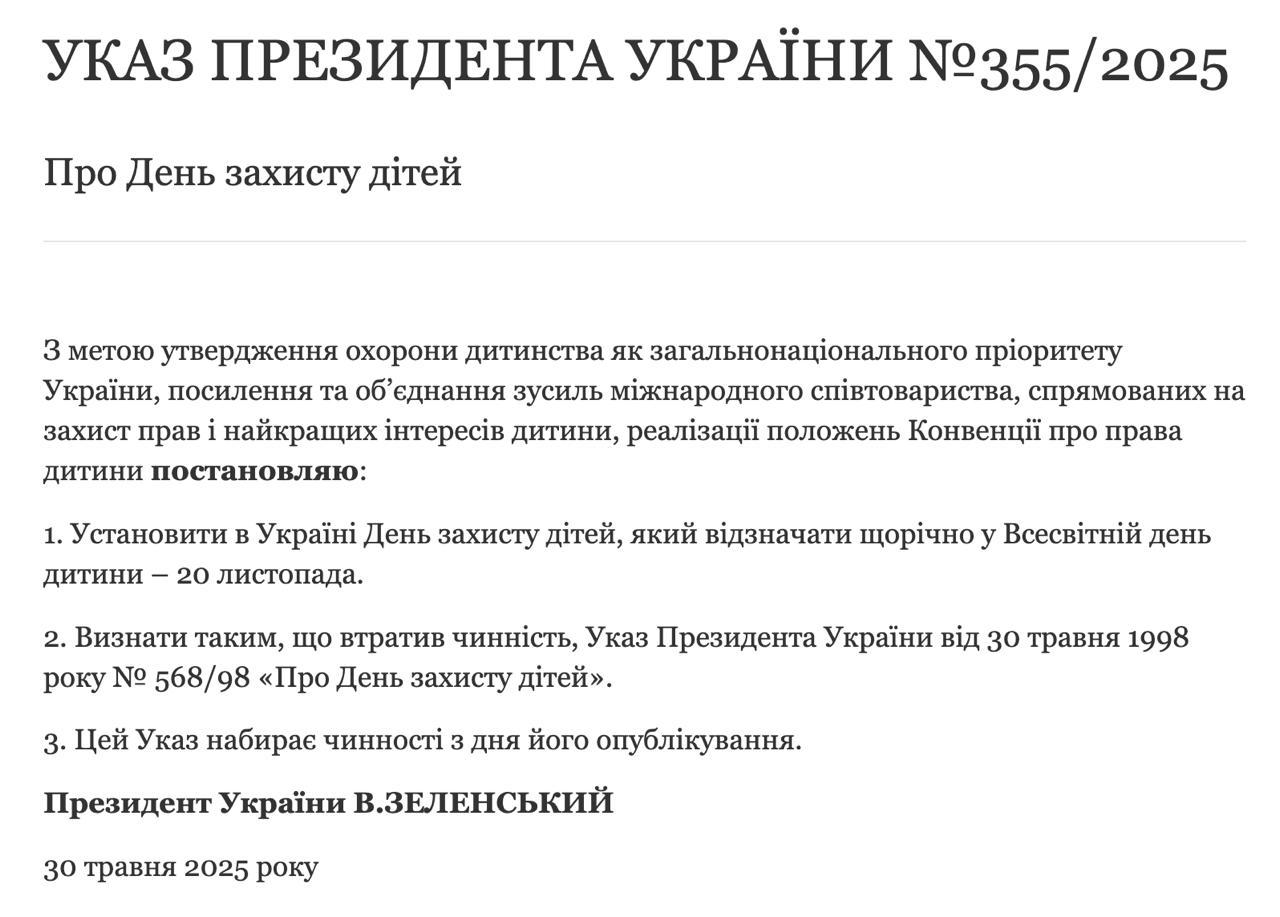 Теперь в Украине День защиты детей будут отмечать во Всемирный день ребенка – 20 ноября.