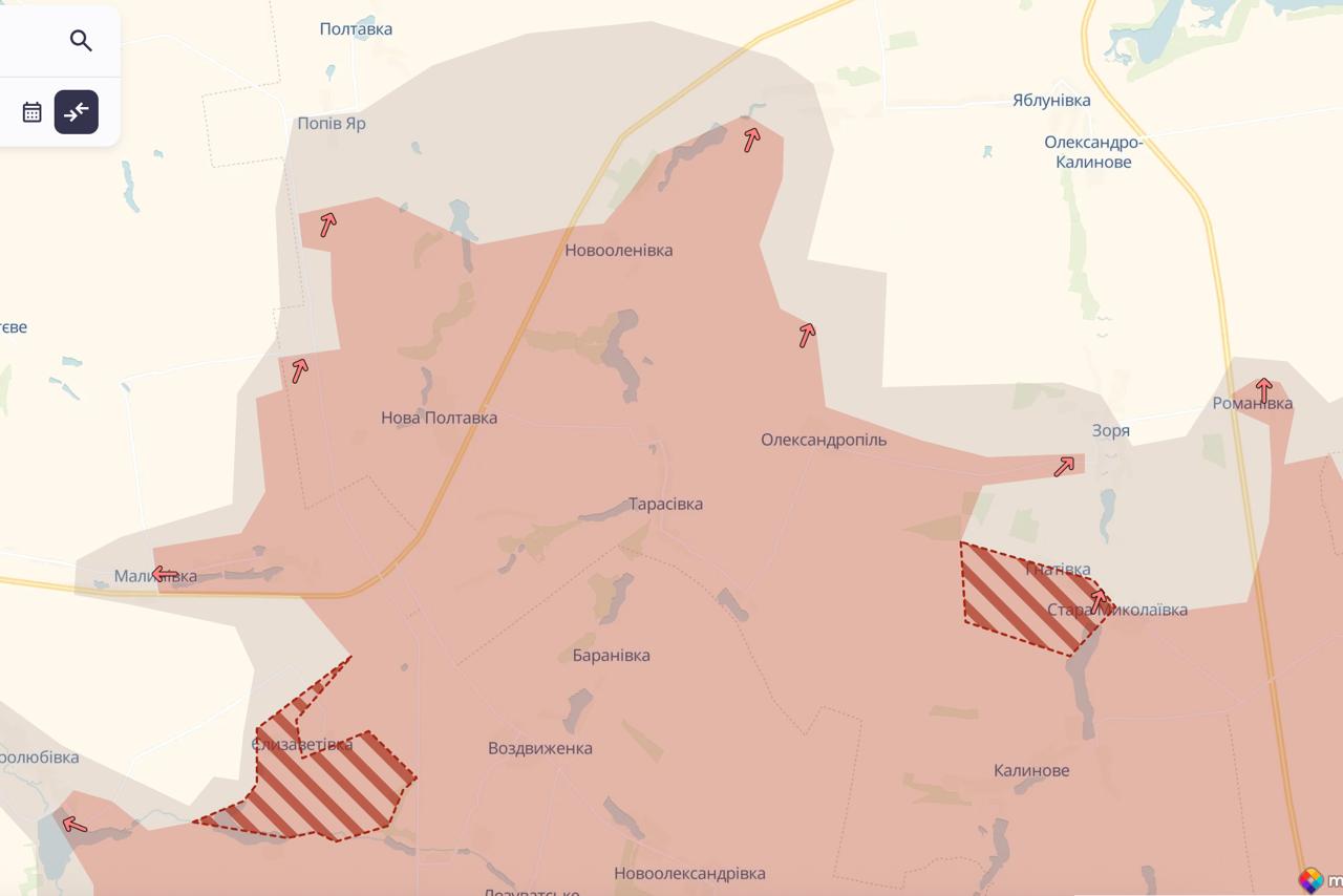 Под Константиновкой российские войска захватили село Елизаветовка, а также продвинулись в Гнатовке. Серая зона также расширилась в районе деревни Попов Яр.