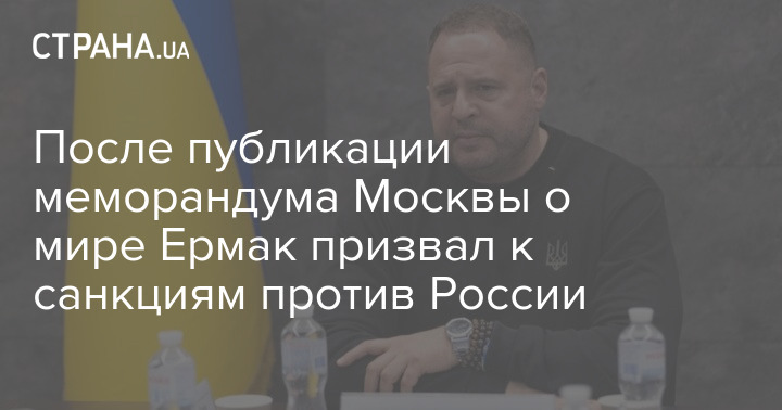 После публикации текста российского меморандума с условиями прекращения огня глава Офиса президента Андрей Ермак призвал к санкциям против РФ.
