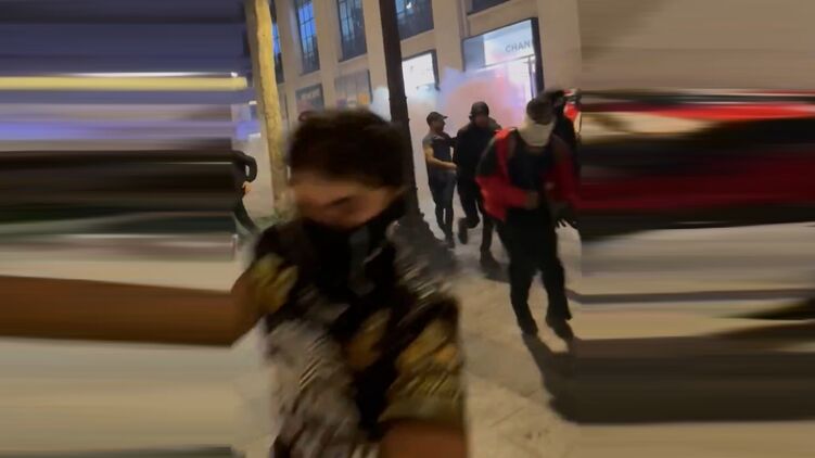 На непродолжительных кадрах молодые люди опрокидывают заграждения, выставленные полицией. Перед площадью, заполненной толпой фанатов ПСЖ юноша с голым торсом залезает на столб.