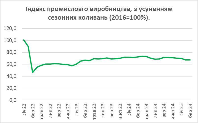 Спад в промышленном производстве в Украине за первый квартал ускорился до 6,1% с 4,8% в январе.