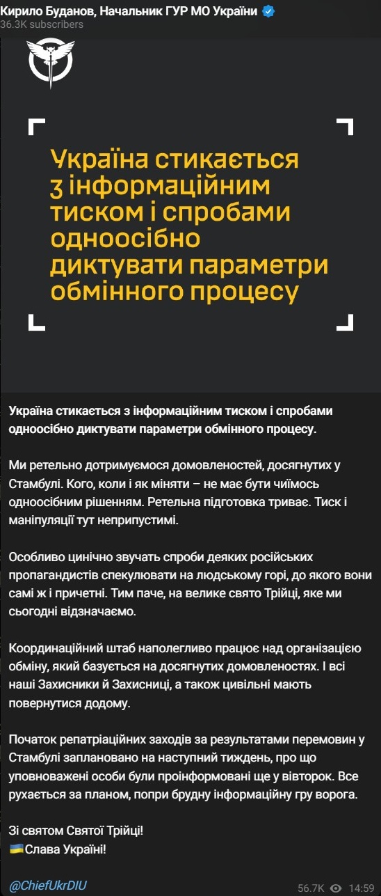 15:34 Обмен телами погибших между Украиной и РФ планируется начать на следующей неделе, заявил глава ГУР Кирилл Буданов.